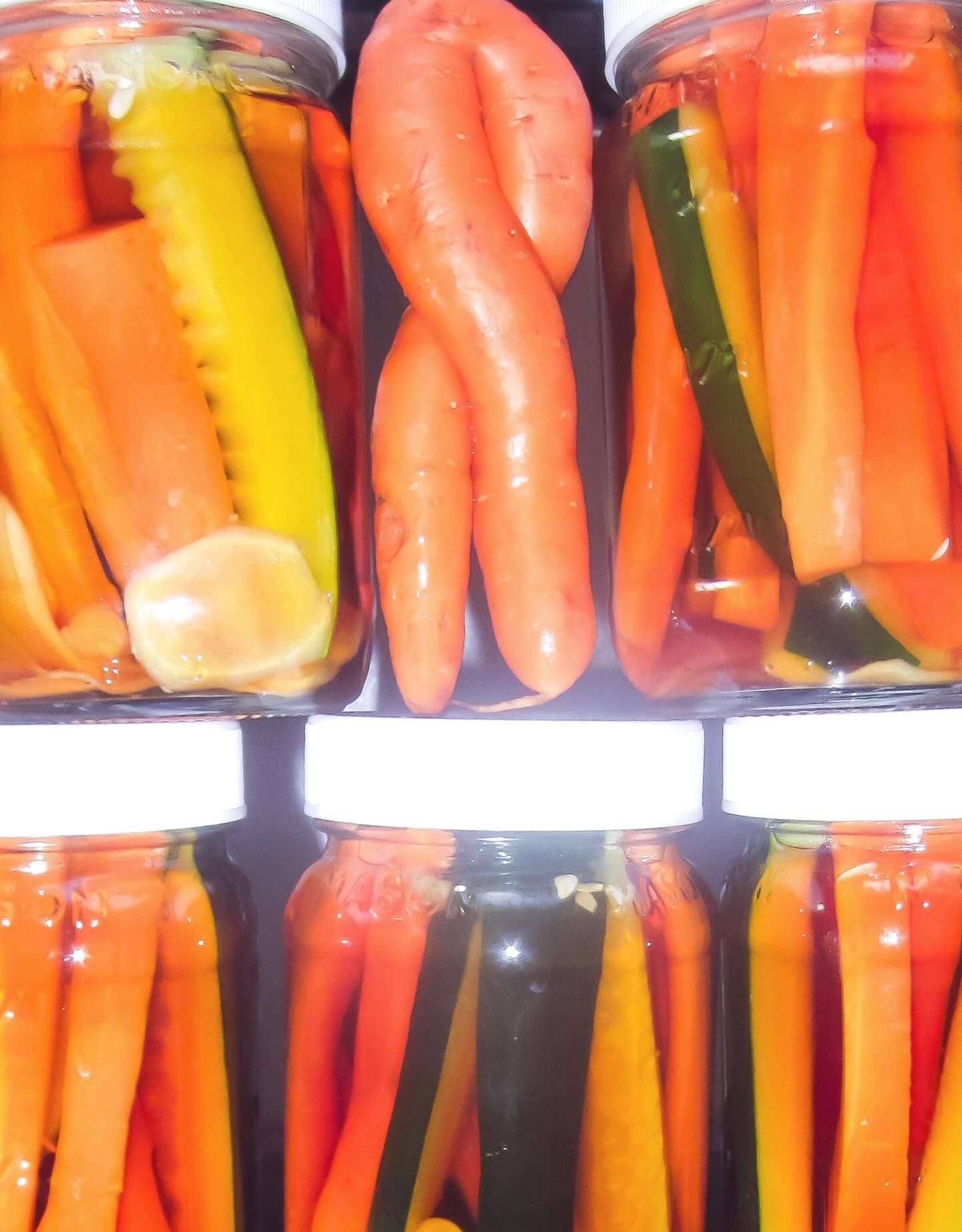 crispy, crunch cukes and carrots in a gingery soy brine made from Kemushi's incredible soy sauce an rice wine vinegar